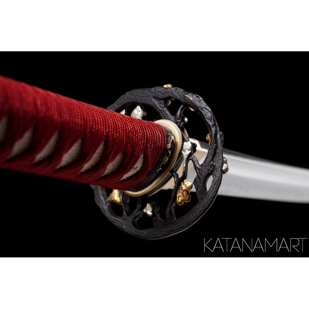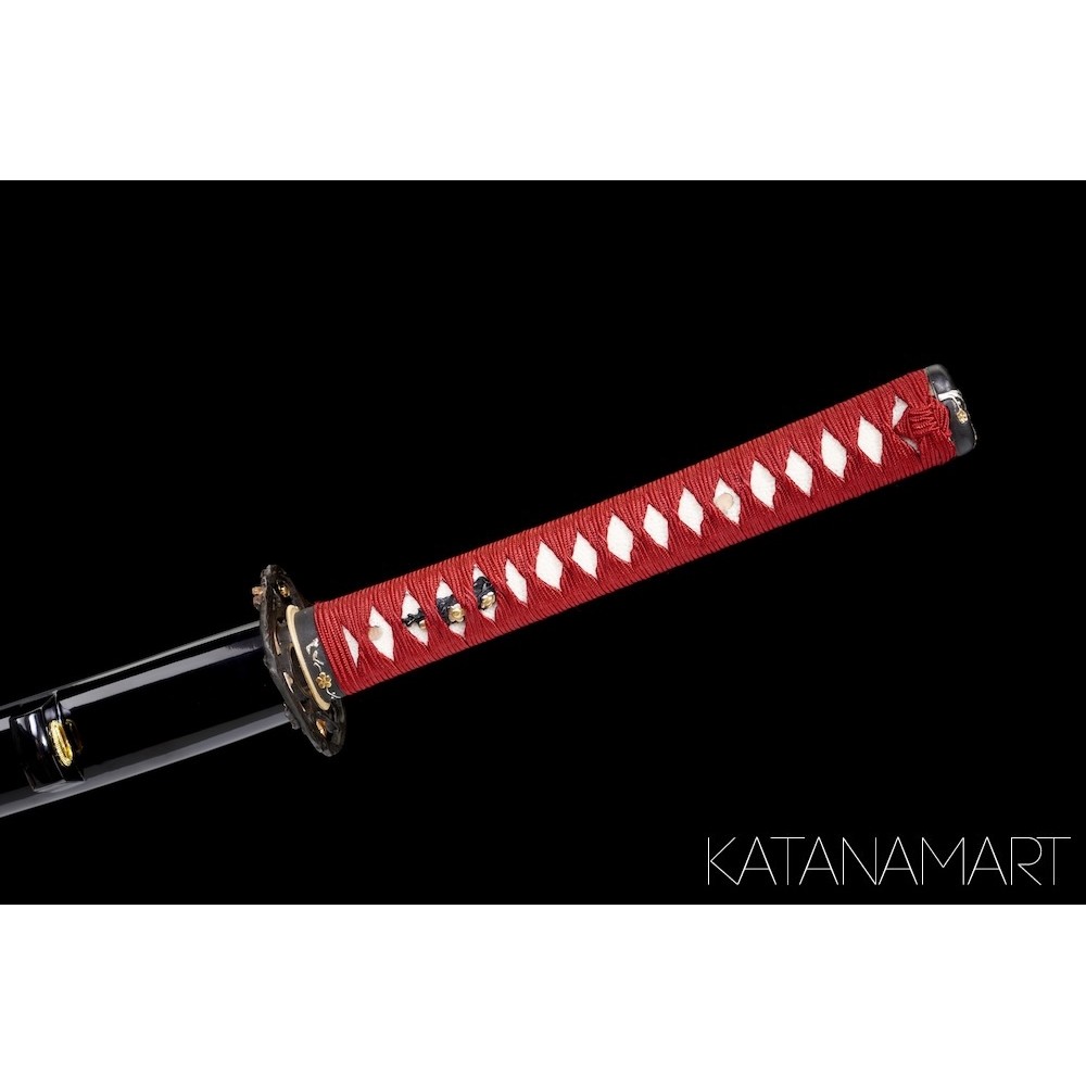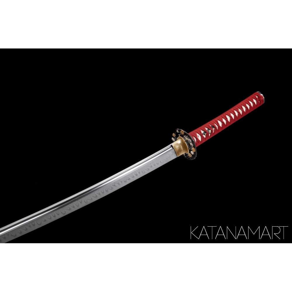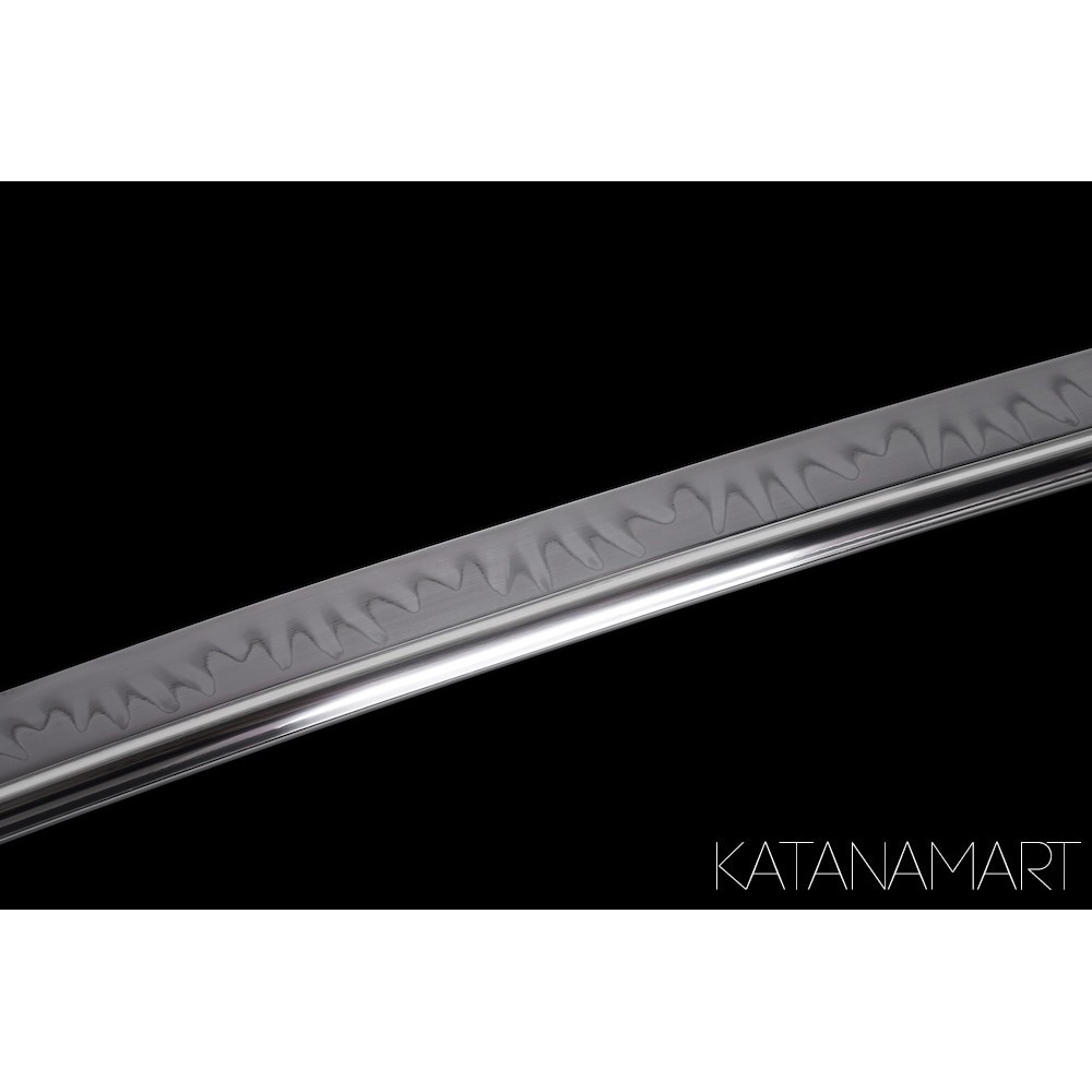 Realizzata a mano in acciaio ad alto tenore di carbonio 1095, con montaggio full tang e tempra ad argilla, questa lama offre durezza e durata eccezionali. Il hamon gunome-midare appare ben marcato grazie a un accurato lavoro di lucidatura, esprimendo carattere e autenticità. È una spada completamente funzionale, adatta tanto alla pratica quanto alla collezione.